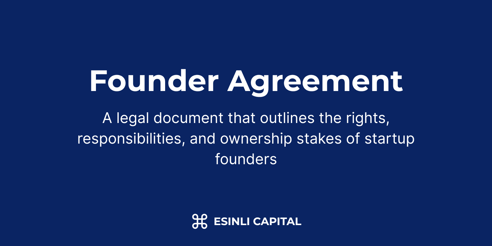 A founder agreement is a legal document that outlines the rights, responsibilities, equity distribution, decision-making processes, and other important aspects of the relationship between startup co-founders.